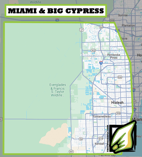 The Miami and Big Cypress area, has some of the best peacock bass and largemouth bass fishing. In these waters an angler can catch peacocks, largemouth bass, snakeheads, and knife clown fish.